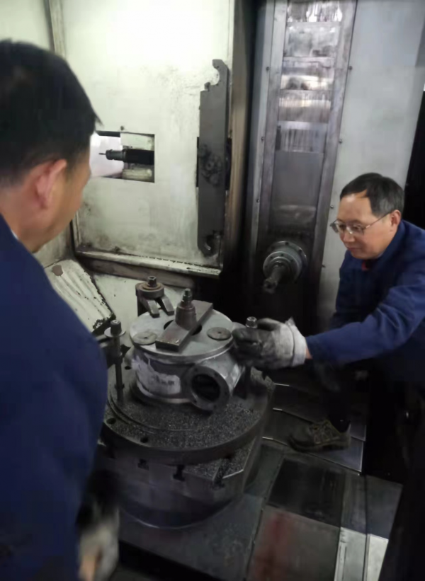 在金工車間主任凌斌的帶領下,程建軍和鮑衛東開動腦筋,挖掘潛力,自制工裝、編制工藝(加工中心編程),5月中旬成功在加工中心上完成了WQ500蝸輪箱箱體的機加工,工藝改進后,加工工效提高了3倍,加工質量穩定可靠,且減輕了鉆削工序壓力,縮短了產品加工周期,提升了企業的競爭力。