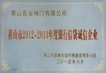 20146月,黃山市金融生態環境建設領導小組研究決定向黃山良業閥門有限公司授牌為“2012-2013年度黃山市銀行信貸誠信企業” 。
