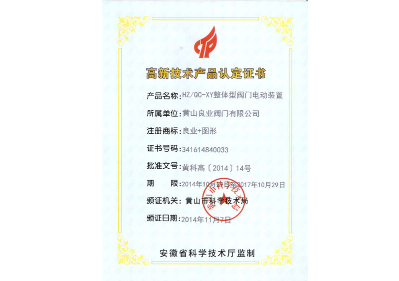 安徽省自主創新新產品證書